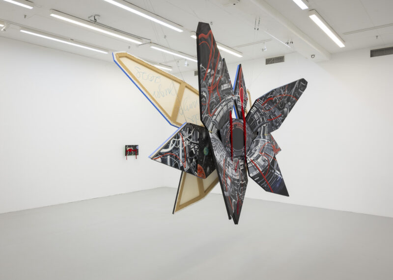Sandra Mujinga frembringer alternative verdener der sammenfiltrer teknologier, mennesker og dyr. Hendes værker er inspireret af arkæologi og science fiction hvorfra hun undersøger nye måder at overleve på en planet præget af usikkerhed og forvandling. Hun skaber enorme skulpturer, der fremtræder som hybride væsener eller rejsende i tid. De formidler en fornemmelse af en intim fremtid og værner om et fællesskab, som gør modstand mod overvågning og vold.
